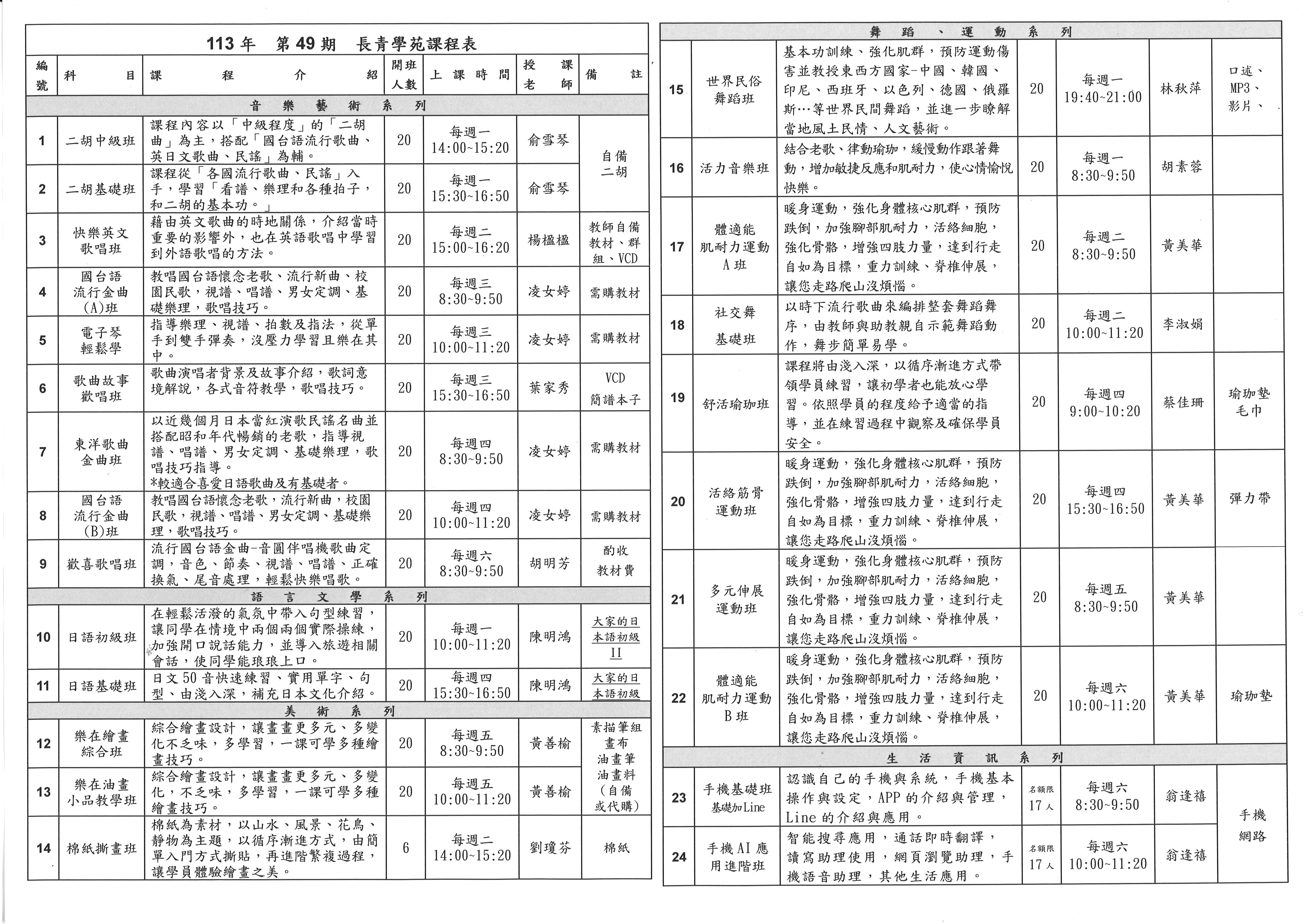 4.國台語流行金曲(A)班(凌女婷老師) 每週三 08:30~09:50