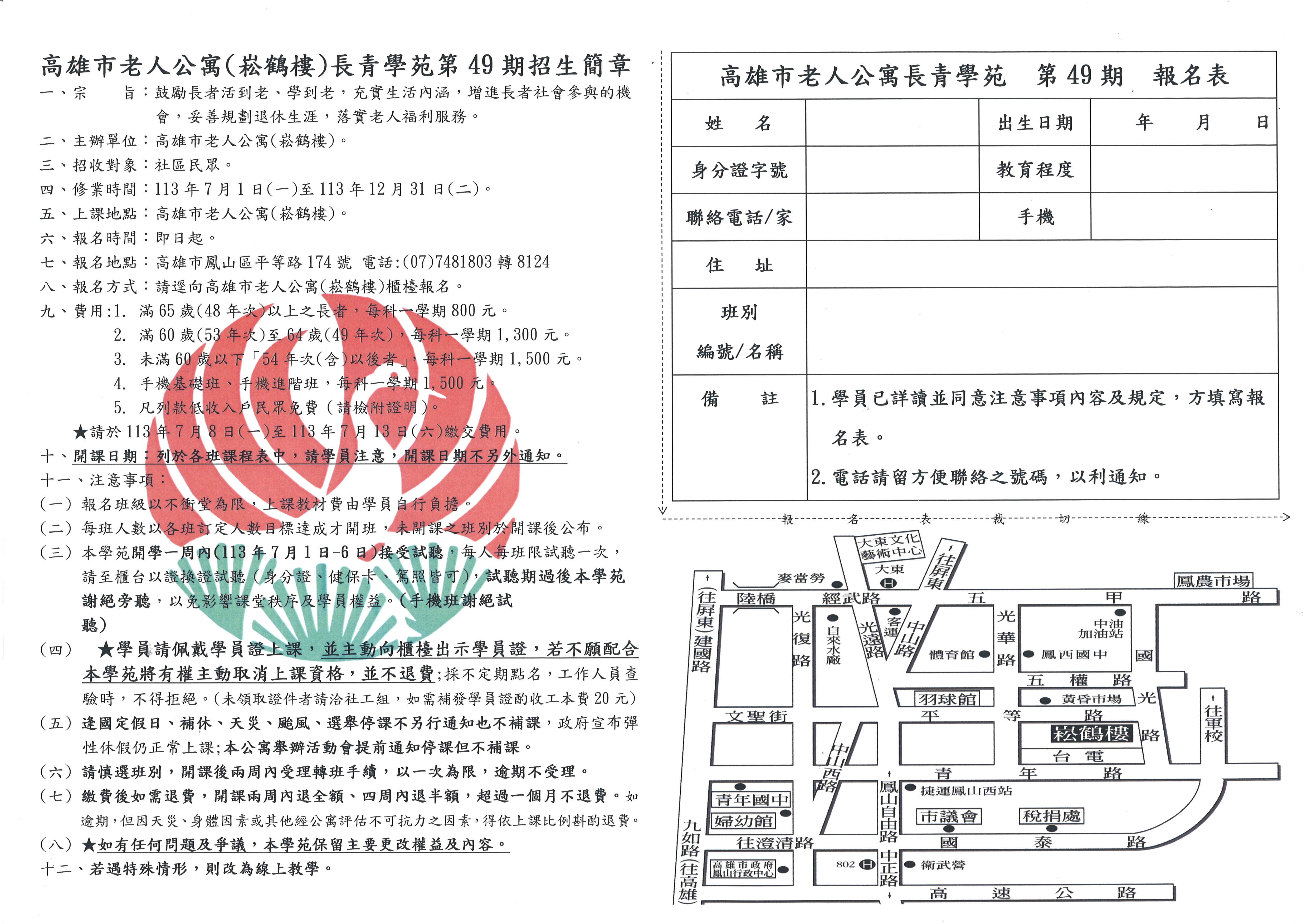 ★上課地點:高雄市老人公寓(崧鶴樓)。[高雄市鳳山區平等路174號]