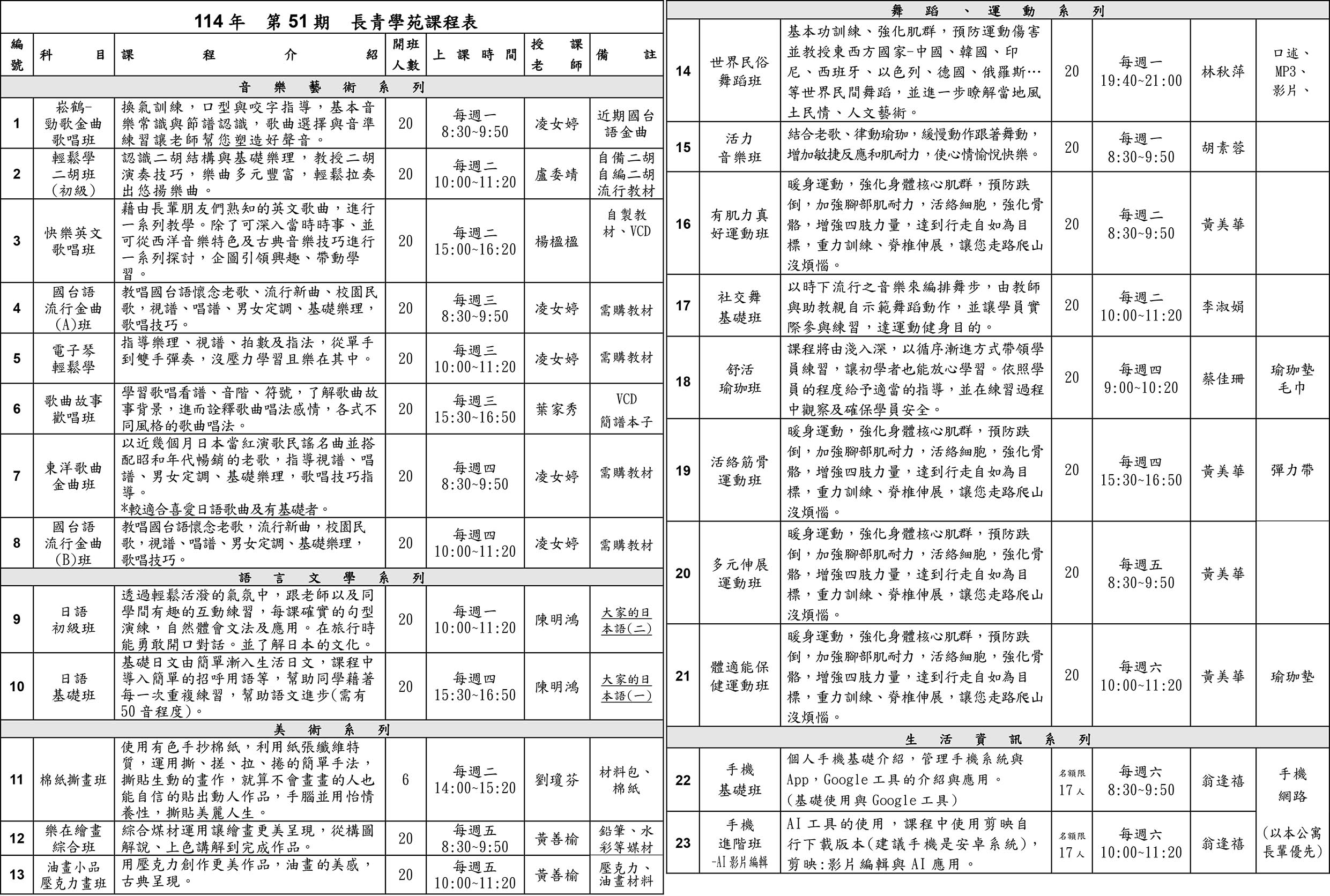 4.國台語流行金曲(A)班(凌女婷老師) 每週三 08:30~09:50
