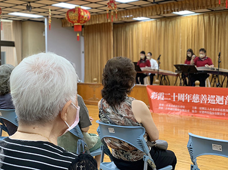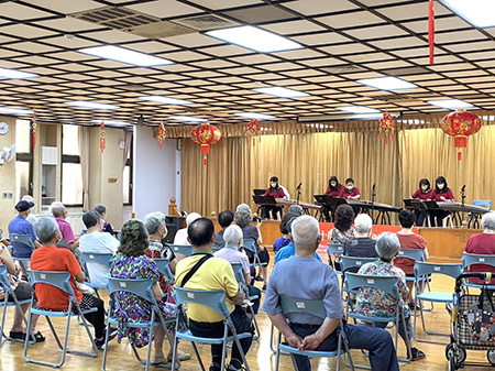 服務介紹 活動剪影 彩霞20周年慈善巡迴音樂會 感謝⭐財團法人台北市彩霞教育基金會⭐5/3邀請♡禾采箏樂團♡於本公寓2樓多功能活動室帶來多首膾炙人口的歌曲演奏與台下長輩互動,琅琅上口的經典歌謠,像是:綠島小夜曲、白牡丹、但願人長久…等國台語金曲,讓長者不禁跟著哼唱,現場不同年齡層長輩皆能引起共鳴,台上台下共譜一場音樂饗宴。73歲王長輩表示演出很精彩,她每首歌都會唱,今天很開心。 返回